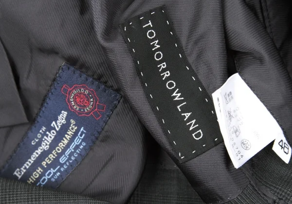トゥモローランドTOMORROWLAND エルメネジルドゼニア Ermenegildo Zegna 生地ウールグレンチェックセットアップスーツ グレー48