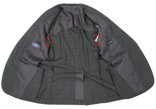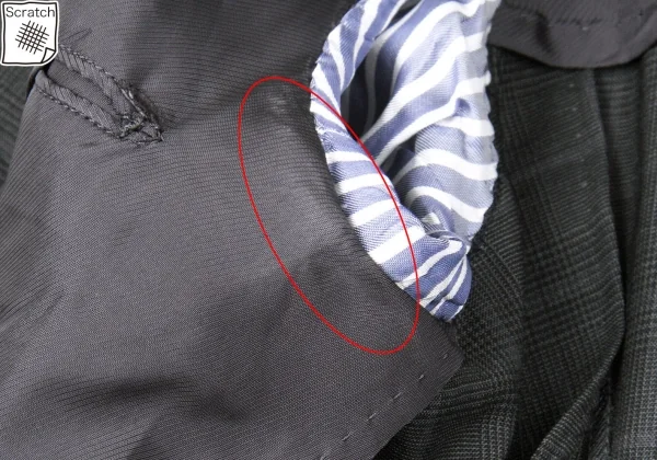 ジャケット 裏地脇下に擦れ、襟元に薄汚れがあります(写真参照)。その他に目立ったシミ、汚れ、ほつれ等なくいい状態です。クリーニング済み