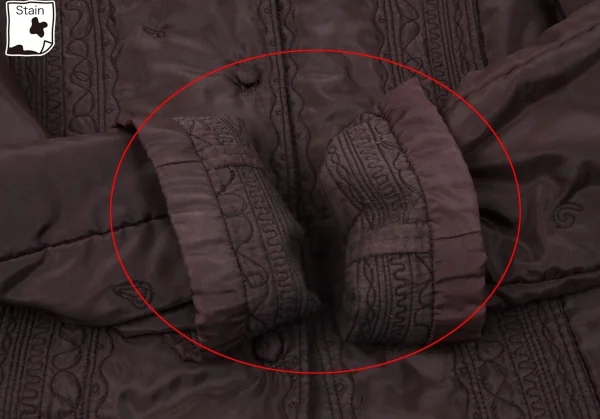 襟裏、袖裏に汚れあります。後身頃に引っ掛けあります。(写真参照)その他に目立ったシミ、汚れ、ほつれ等なくいい状態です。クリーニング済み