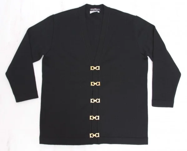 サルヴァトーレフェラガモFerragamoガンチーニウールカーディガン 黒S