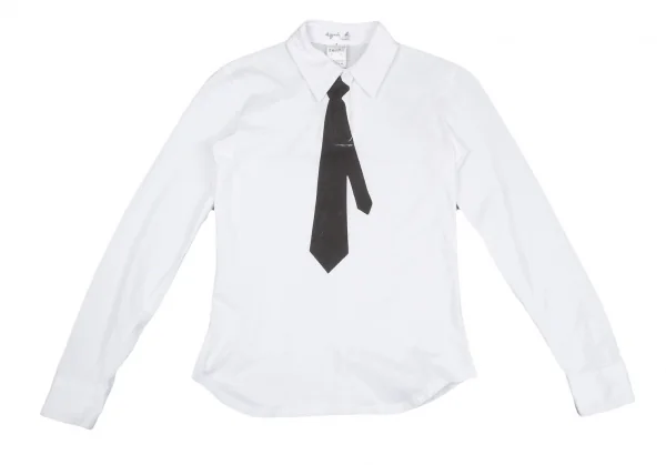 アニエスベーagnes b. トロンプルイユネクタイプリントポロカットソー 白1