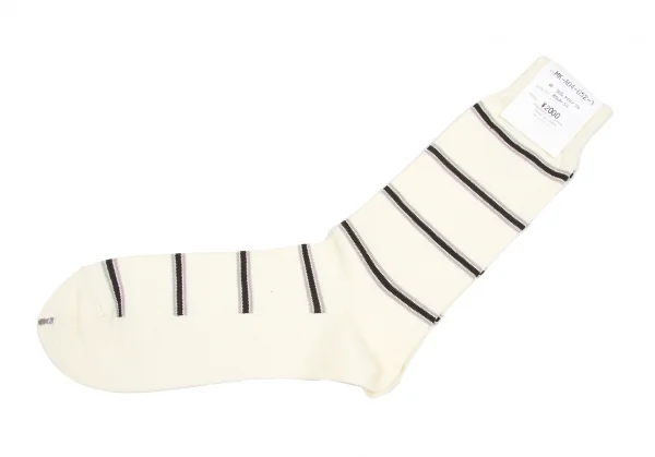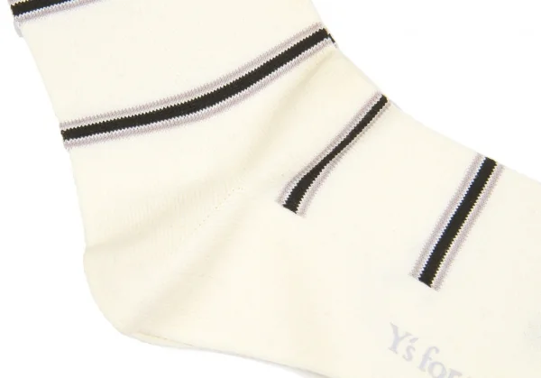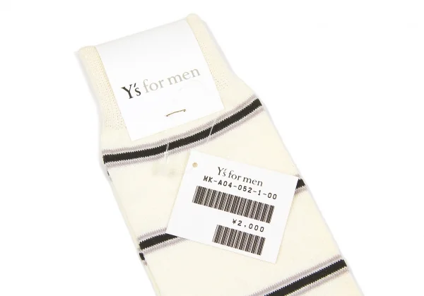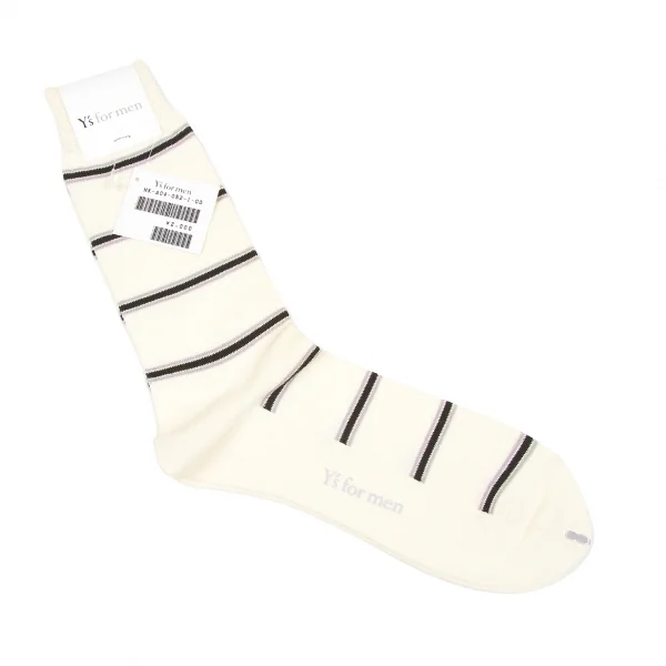 新品!ワイズフォーメンY's for men 綿ナイロンストレッチボーダーソックス オフ黒グレーM位