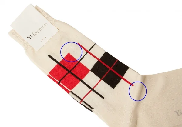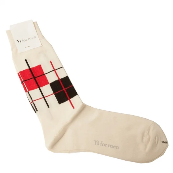新品ですが… ワイズフォーメンY's for men チェックデザインソックス オフ赤黒M位