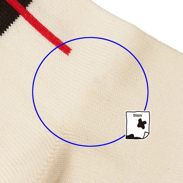 新品の商品ですが、薄シミ・ほつれがあります(画像参照)。その他目立ったシミ、汚れ、ほつれ等なくいい状態です。