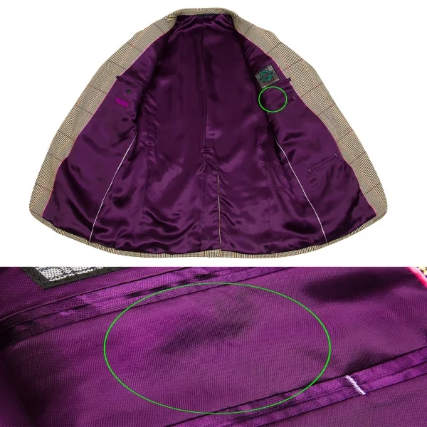 ジャケット:裏地ポケット口に生地のダメージがあります(画像参照)。パンツ:ブランドタグがありません。その他目立ったシミ、汚れ、ほつれ等なくいい状態です。クリーニング済み