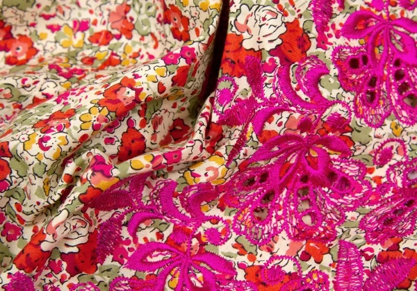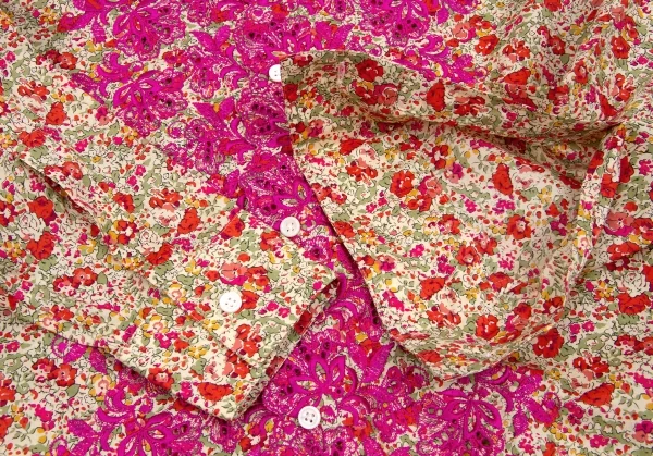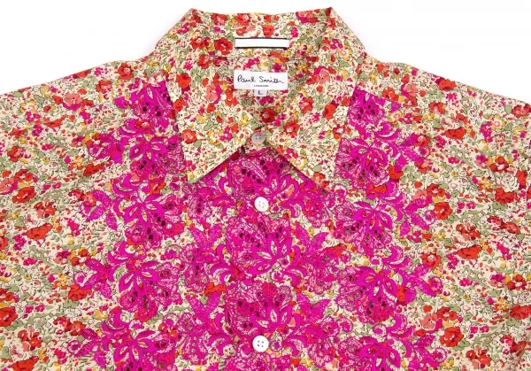 ポールスミスPaul Smith LONDON フロントレース花柄シャツ ピンクベージュグリーン他L