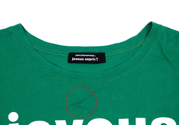 【最終値下げ】メルシーボークーmercibeaucoup レタリングプリントショート丈Tシャツ 緑白1