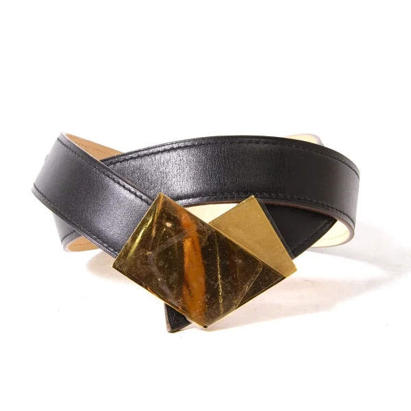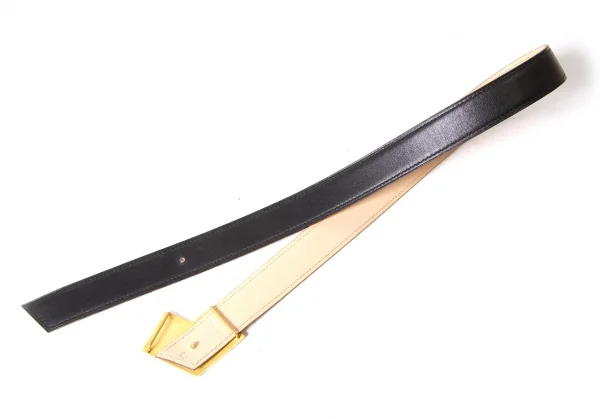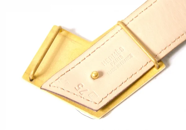 【SALE】エルメスHERMES ボックスカーフレザーベルト 黒ゴールド75