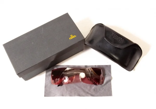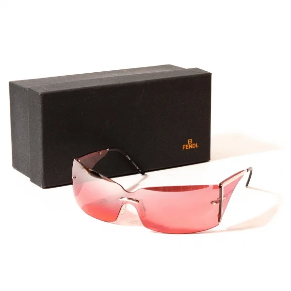 フェンディFENDI ワンレンズサングラス 赤茶シルバー