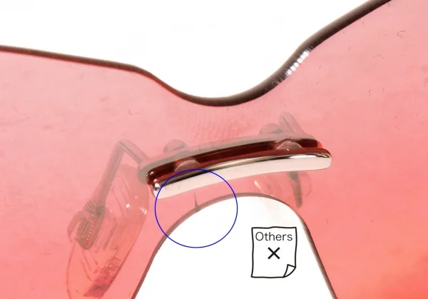 鼻幅に割れ目があります。(写真参照)その他目立った傷などはないです。お客様一人一人の視力、骨格、鼻幅、耳の高さが違います。このような理由からオンラインショップでの度付きレンズ販売はしておりません。 お手数をおかけしますが、度入りレンズはお近くの眼鏡店等でお買い求めください。 他眼鏡店にてレンズの入れ替え、調整等に生じた不具合、破損については一切の責任を負いかねますので予めご了承下さい。