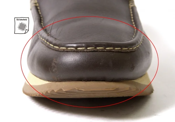 小キズがあります(写真参照)。その他ソールの減りも少なく目立った汚れ、シミ等なくいい状態です。