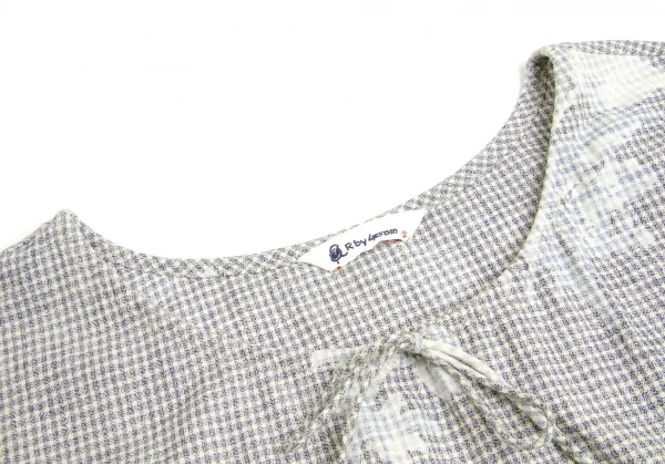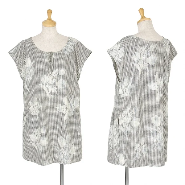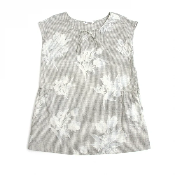【最終値下げ】R by 45rpm チェックフラワープリントチュニックトップス 濃淡紺オフ2