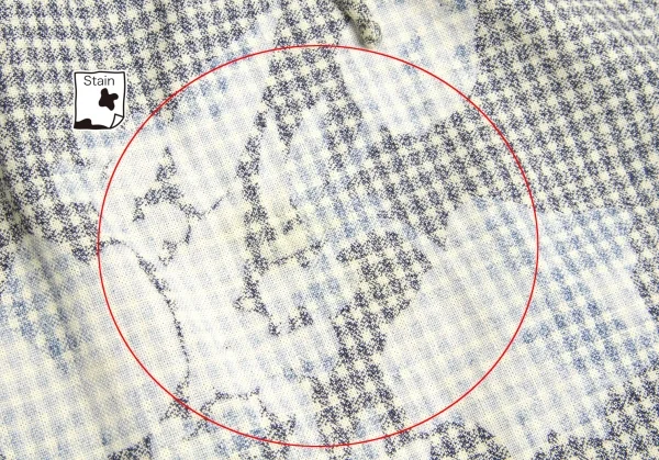 品質表示タグカット。前身頃シミがあります(写真参照)。その他に目立ったシミ、汚れ、ほつれ等なくいい状態です。クリーニング済み