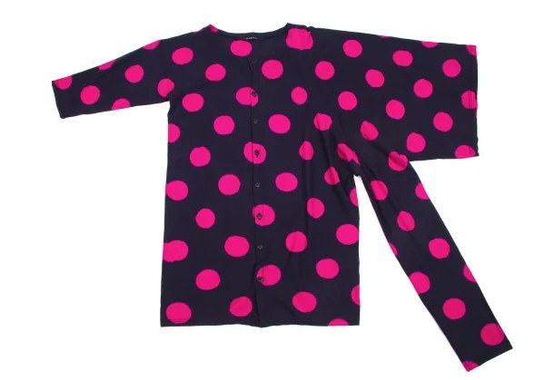 リミフゥLIMI feu ドット抜染変形袖カーディガン 紺ピンクS