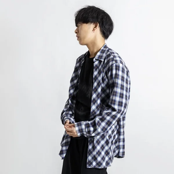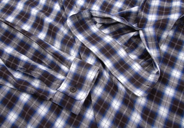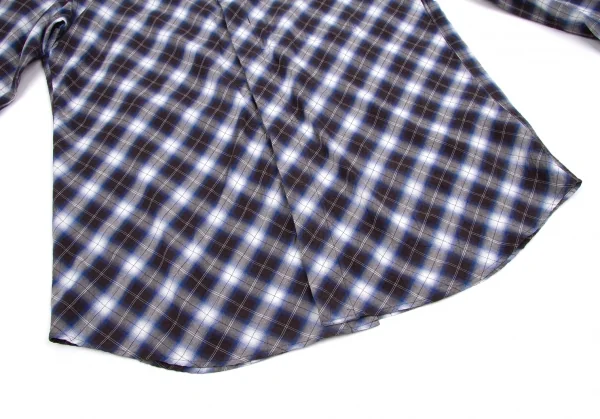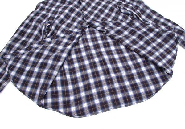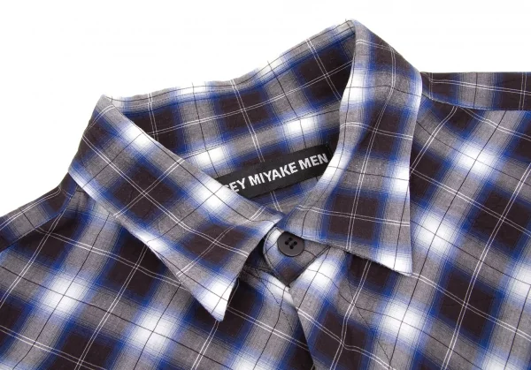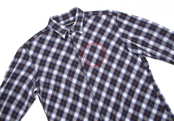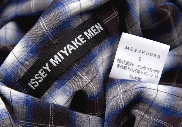 【SALE】イッセイミヤケ メンISSEY MIYAKE MEN テンセル比翼チェックシャツ 紺茶オフ2