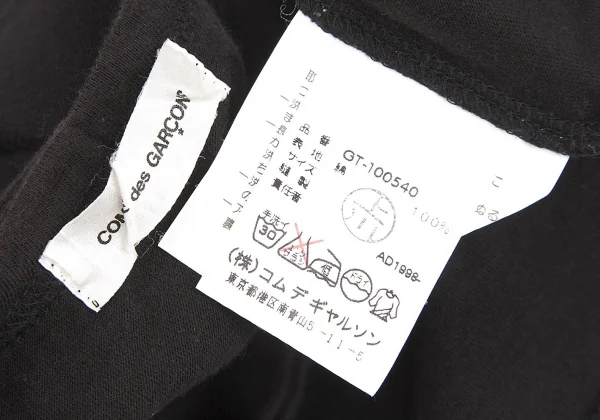 コムデギャルソンCOMME des GARCONS コットン半身レイヤーシームデザインTシャツ 黒M位