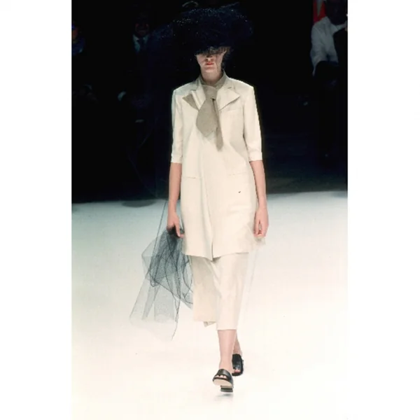 ヨウジヤマモトファムYohji Yamamoto FEMME ネクタイ付きシルク異素材半袖セットアップスーツ ベージュ濃淡S