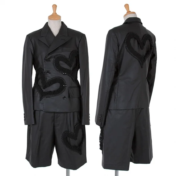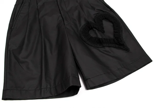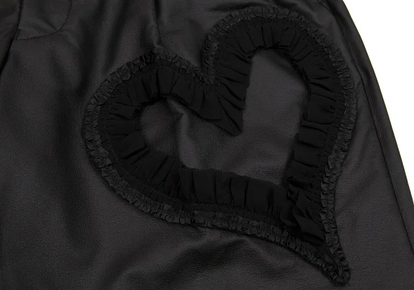 コムデギャルソンCOMME des GARCONS フリルハートフェイクレザーハーフパンツ 黒S