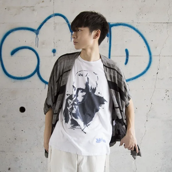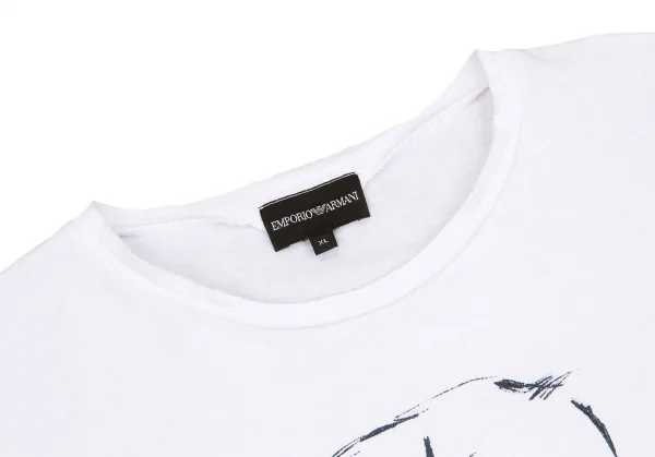 エンポリオアルマーニEMPORIO ARMANI ジョルジオアルマーニプリントTシャツ オフグレー紺水色XL