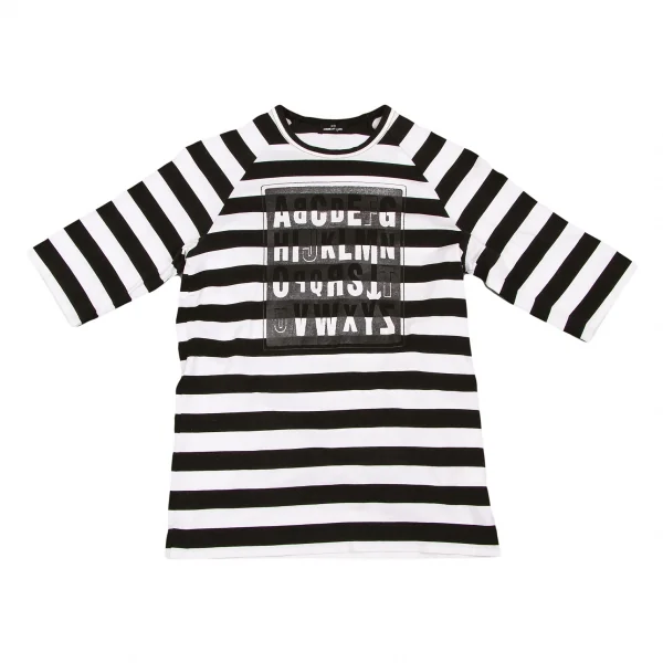 トリココムデギャルソンtricot COMME des GARCONS アルファベットプリントボーダーTシャツ 白黒M位