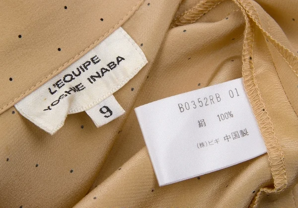 【最終値下げ】レキップヨシエイナバL'EQUIPE YOSHIE INABA ピンドットシルクシャツ ベージュ黒9