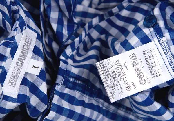ナラカミーチェNARACAMICIE ギンガムチェックフリルシャツ 青白1