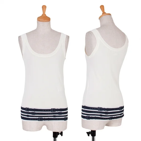 【SALE】エルメスHERMES ベルトラインタンクトップ 生成り紺34