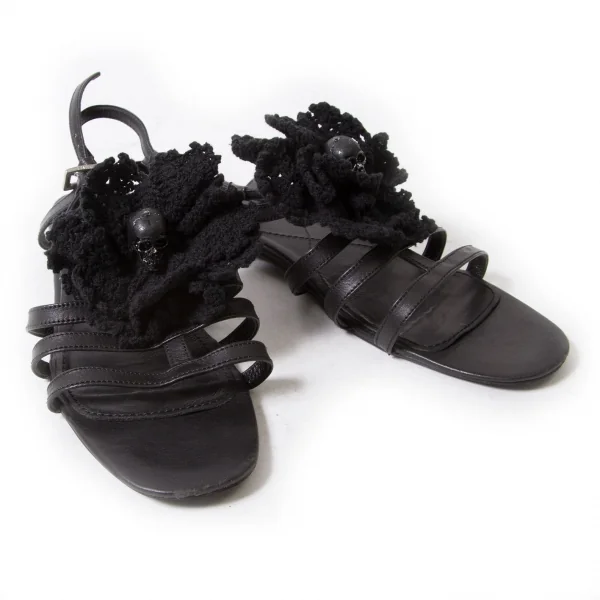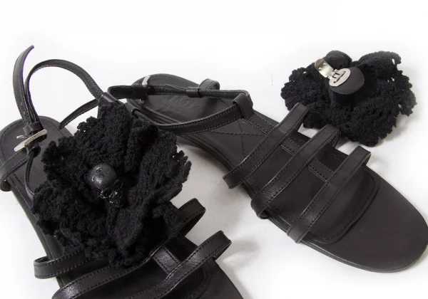 【最終値下げ】リミフゥLIMI feu スカルコサージュ付きレザーグラディエーターサンダル 黒LL(24.5位)