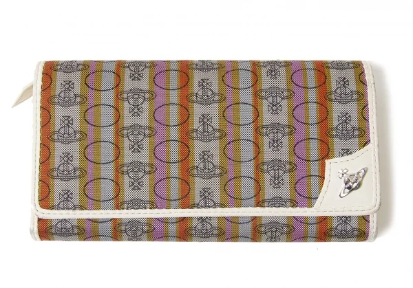 【SALE】ヴィヴィアンウエストウッドVivienne Westwood オーブ刺繍キャンバス長財布 マルチ
