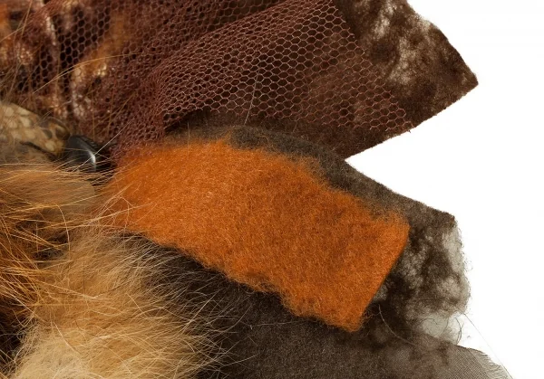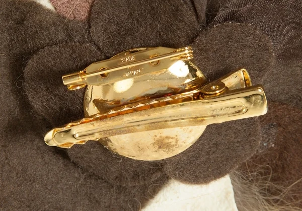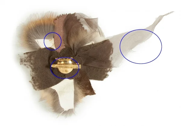 アッシュペーフランスH.P.FRANCE 異素材切替デザインブローチ 茶系