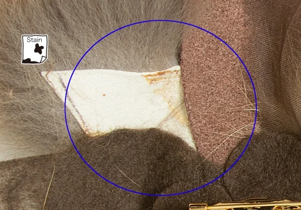 ほつれ、裏側に接着跡・サビがあります(画像参照)。その他目立ったシミ、汚れ、ほつれ等なくいい状態です。
