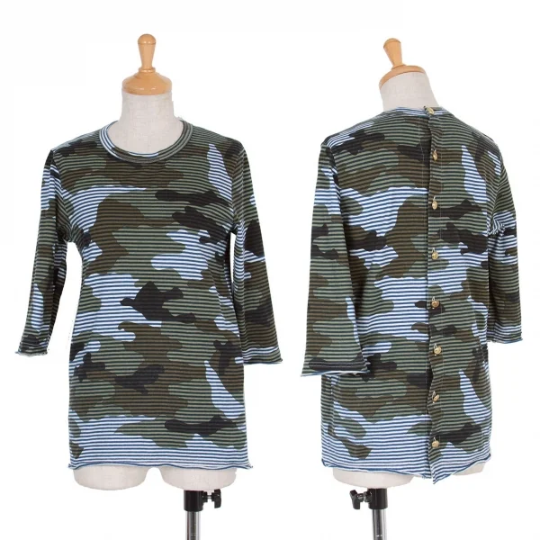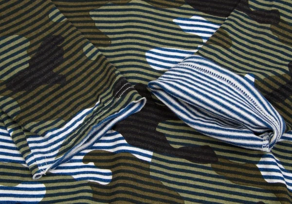 タオ コムデギャルソンtao COMME des GARCONS カモフラプリントボーダーカットソー 濃淡カーキ紺他S