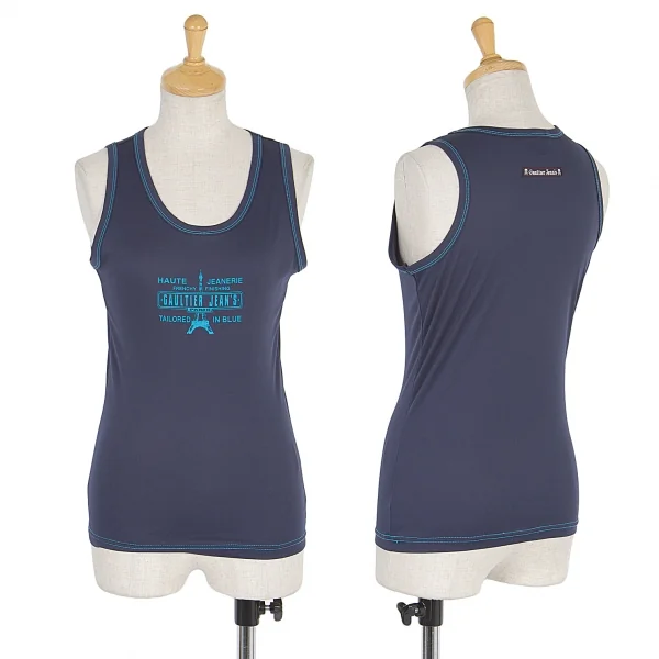 【SALE】ゴルチエジーンズGAULTIER JEAN'S プリントナイロンタンクトップ 紺青40