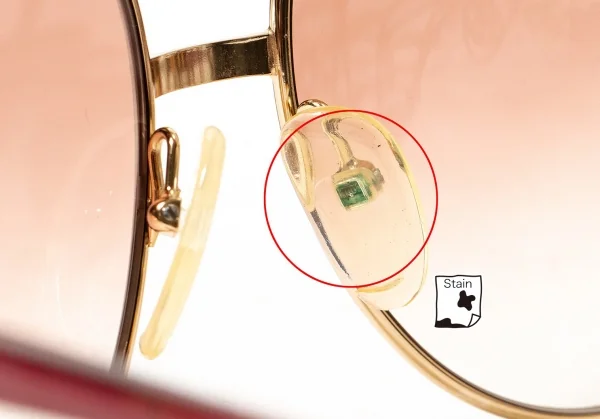 鼻パッドに若干汚れが有ります(写真参照)が目立った傷などはないです。お客様一人一人の視力、骨格、鼻幅、耳の高さが違います。このような理由からオンラインショップでの度付きレンズ販売はしておりません。 お手数をおかけしますが、度入りレンズはお近くの眼鏡店等でお買い求めください。 他眼鏡店にてレンズの入れ替え、調整等に生じた不具合、破損については一切の責任を負いかねますので予めご了承下さい。