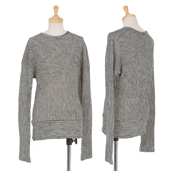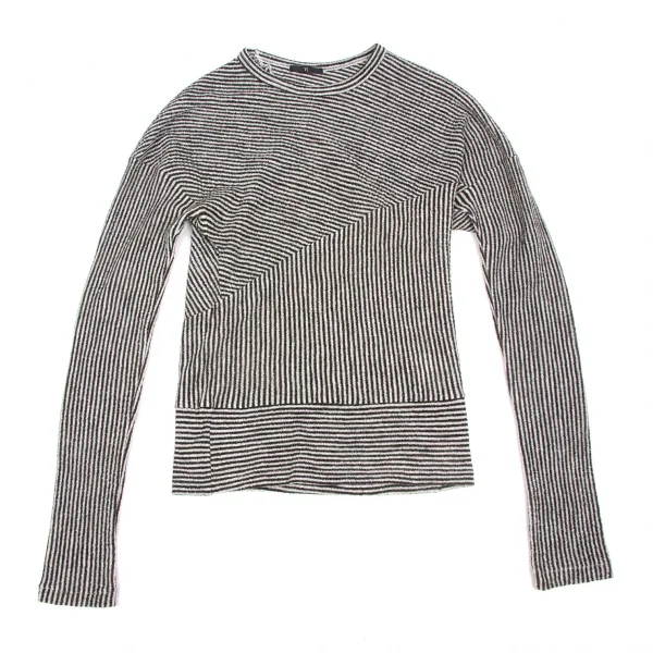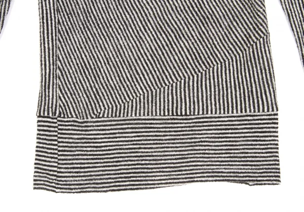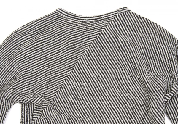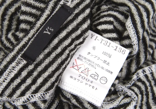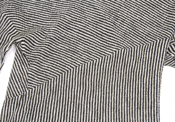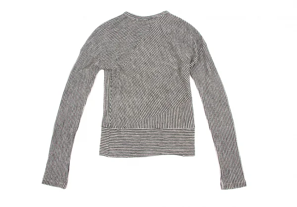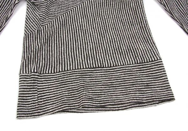 【SALE】ワイズY's ウール切替ストライプパイルカットソー 黒白M位