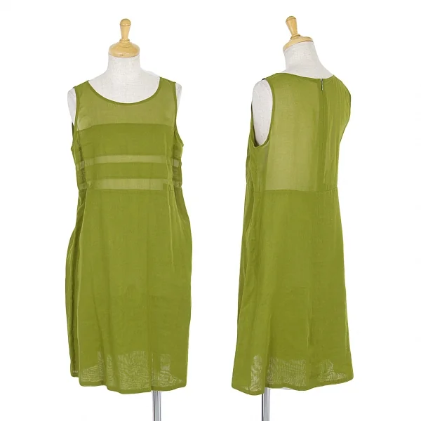 【SALE】ジジリgigli コットン切替シースルーノースリーブワンピース オリーブ38(M)