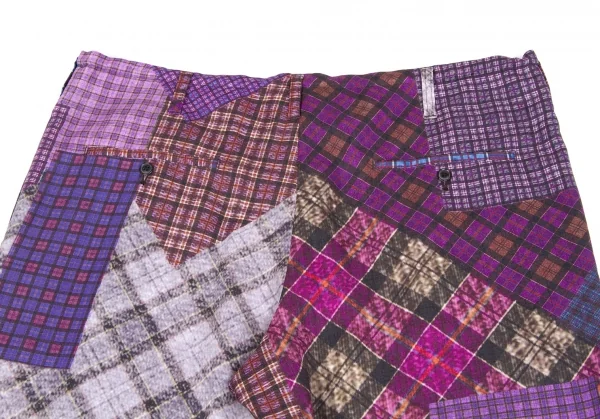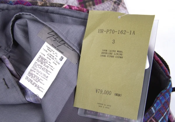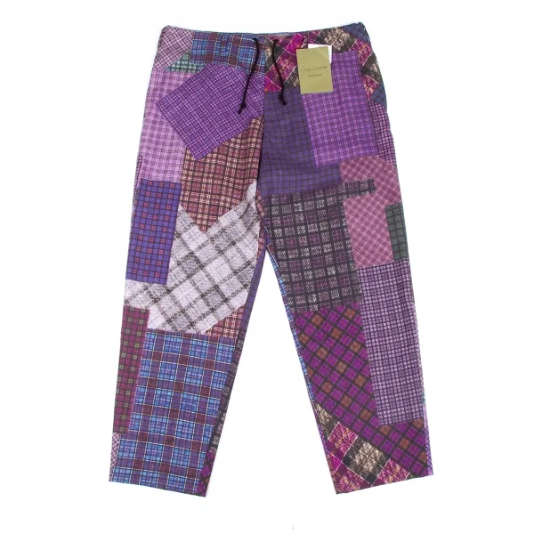 新品!ヨウジヤマモトプールオムYohji Yamamoto pour homme 阪急メンズ限定パッチワーク格子柄プリントウールギャバ紐パンツ 紫他3