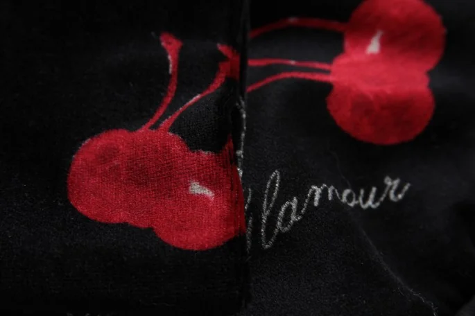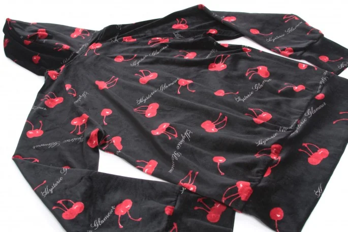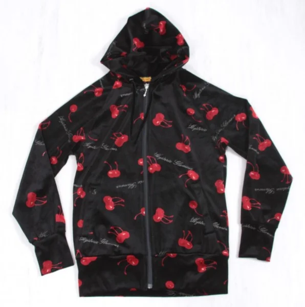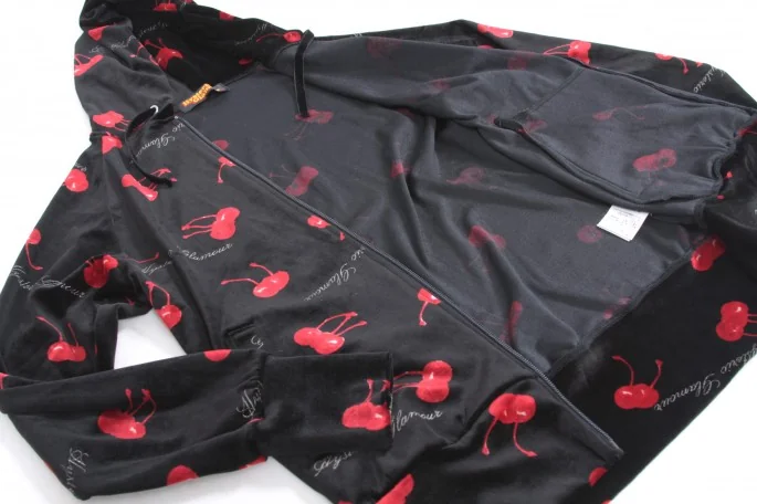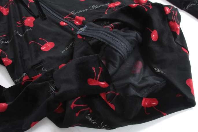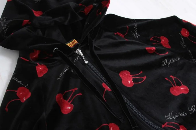 ヒステリックグラマーHYSTERIC GLAMOUR チェリー柄ベロアパーカー 黒フリー M位