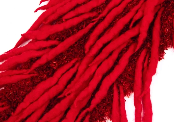 イッセイミヤケISSEY MIYAKE アクリルウールフリンジストール 赤
