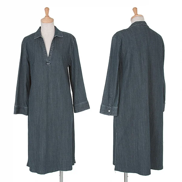 マドモアゼルノンノンMademoiselle NON NON スキッパーカラーデニムワンピース インディゴ40(L)