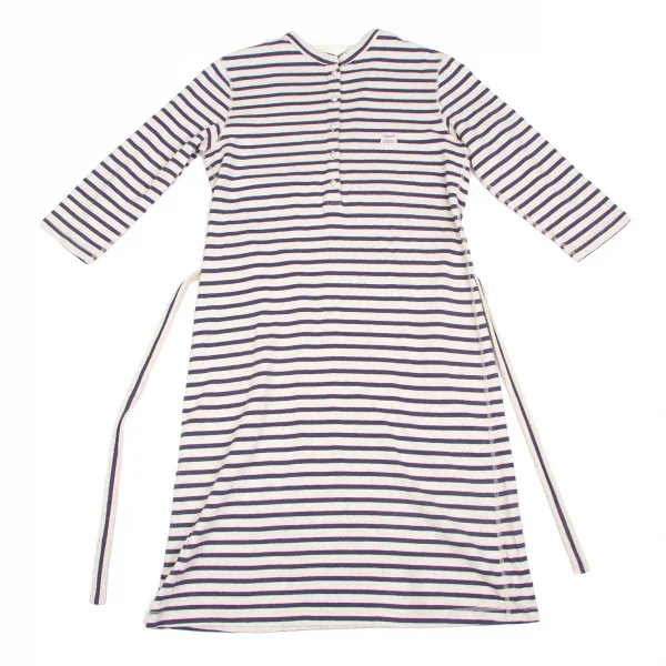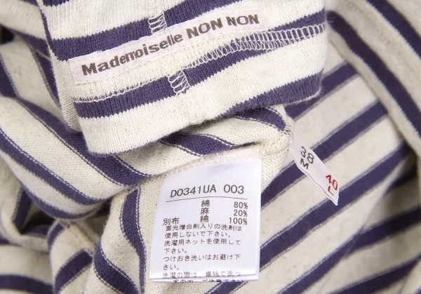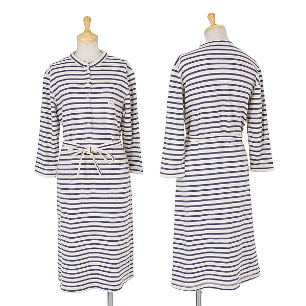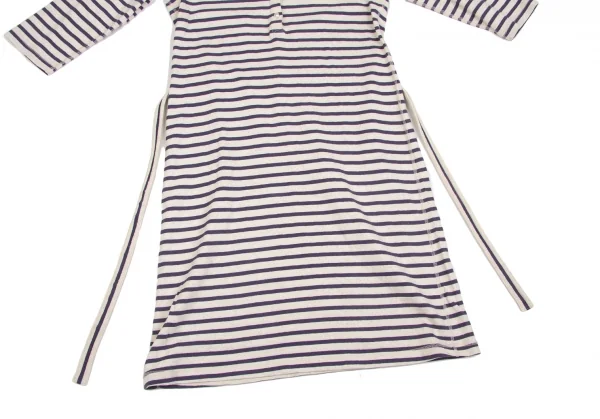 【SALE】マドモアゼルノンノンMademoiselle NON NON ベルト付きボーダーワンピース 紺オートミール40(L)