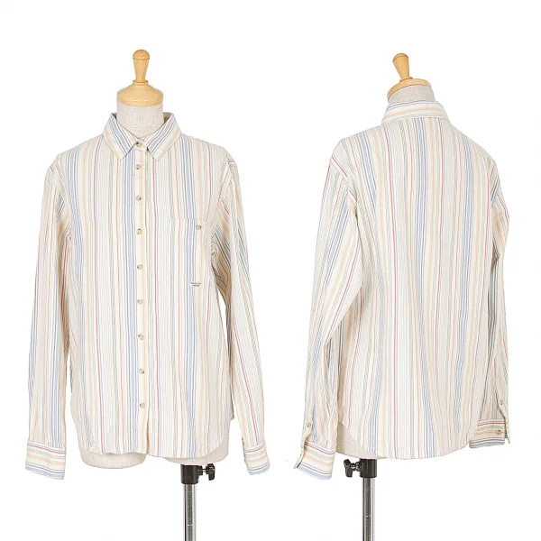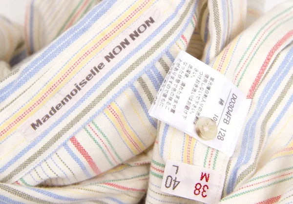 マドモアゼルノンノンMademoiselle NON NON コットンストライプシャツ ベージュカーキ赤他38(M)