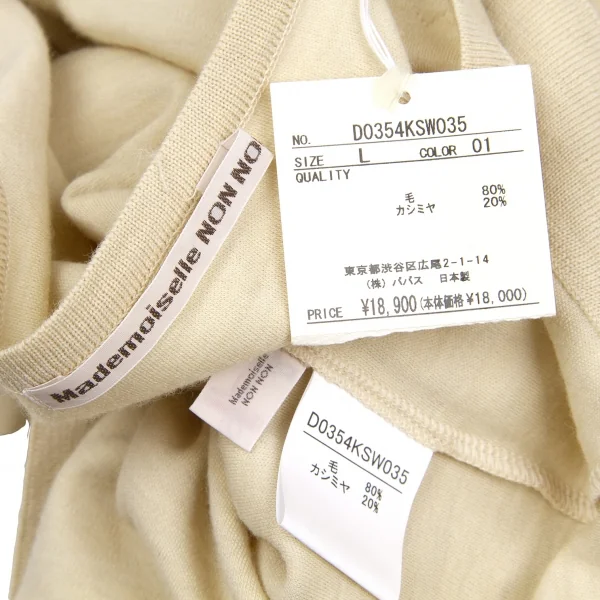 新品!マドモアゼルノンノンMademoiselle NON NON カシミヤ混半袖Tシャツグレー ベージュL