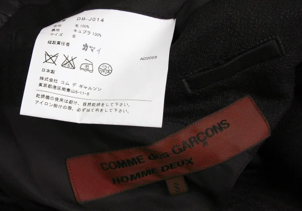 コムデギャルソンオムドゥCOMME des GARCONS HOMME DEUX ウールヘリンボーンテーラードジャケット 黒 チャコールブラックS