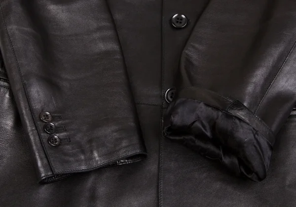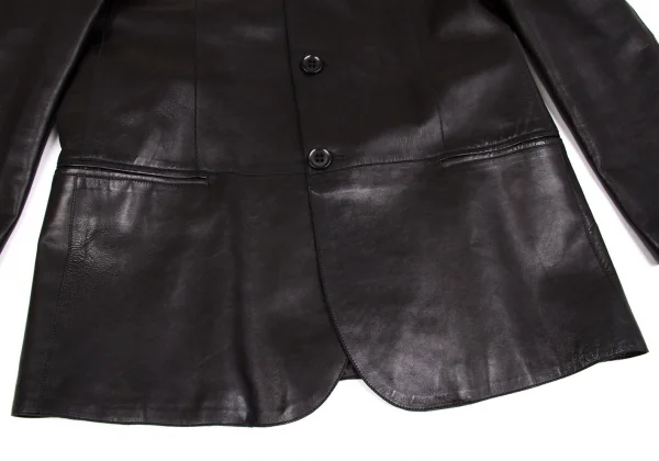 紺タグ ジョルジオ アルマーニ クラシコGIORGIO ARMANI CLASSICO レザーテーラードジャケット 黒50