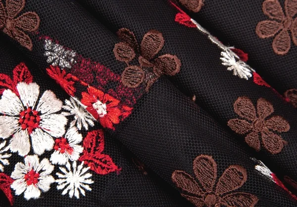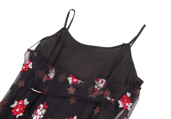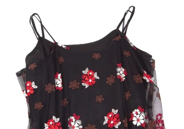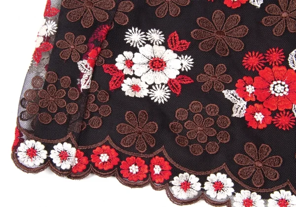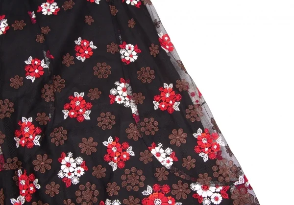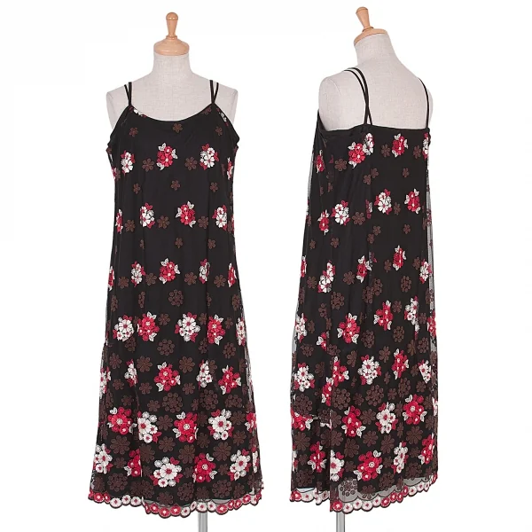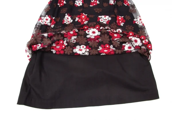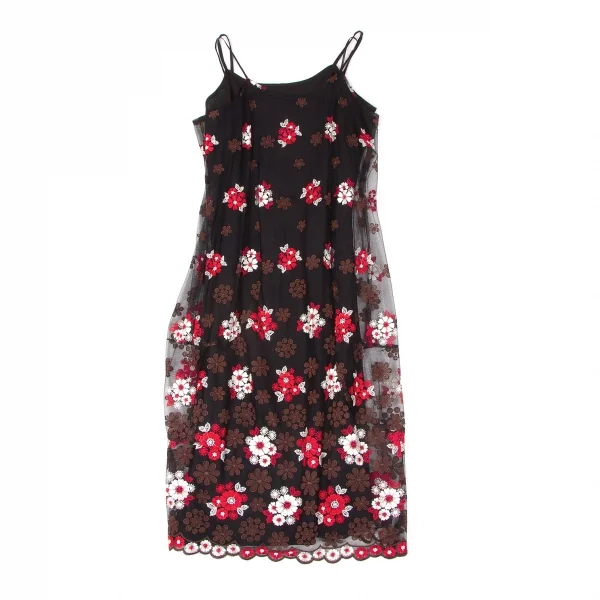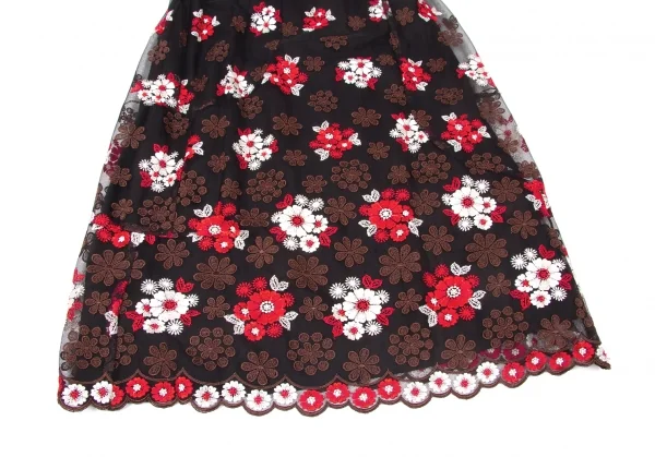 ローブドシャンブル コムデギャルソンrobe de chambre COMME des GARCONS花刺繍レースレイヤードワンピース 黒赤白茶M