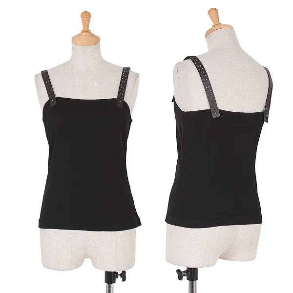 【SALE】ジャンポールゴルチエ ファムJean Paul GAULTIER FEMME カットレザーショルダーキャミ 黒40