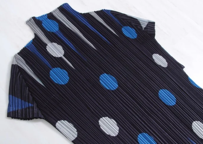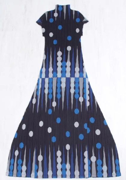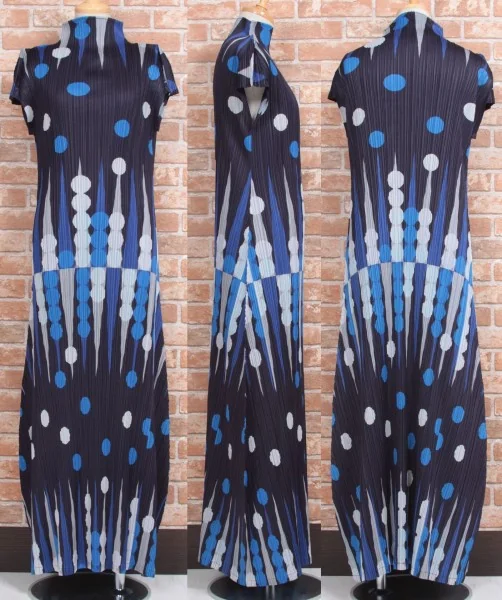 新品!プリーツプリーズPLEATS PLEASE  水玉柄ワンピース 紺PP73-JH616 パープル5