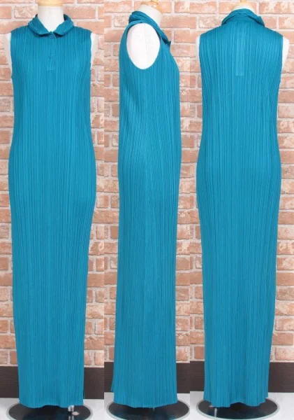 新品!プリーツプリーズPLEATS PLEASE ノースリーブワンピース PP63-JH206 青5