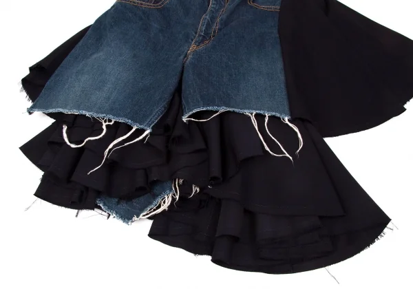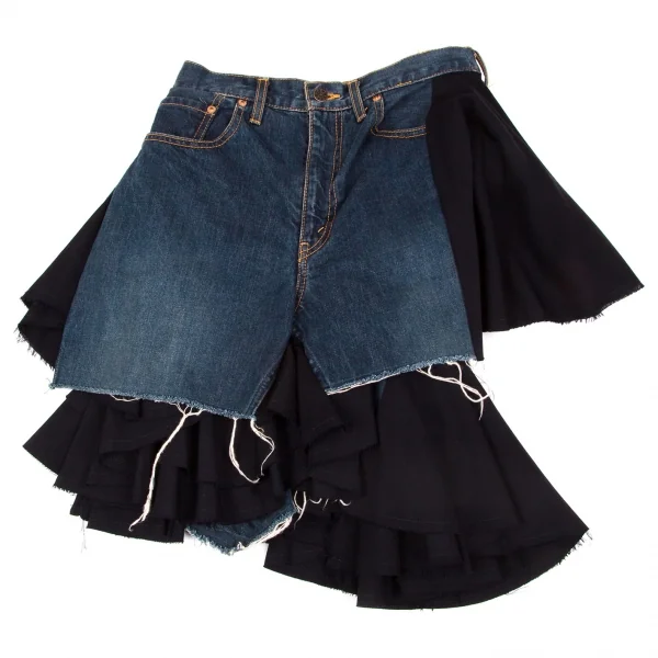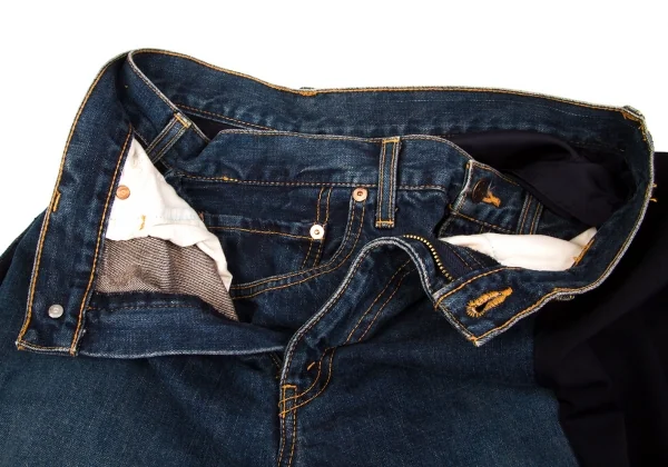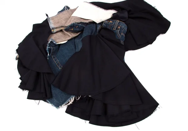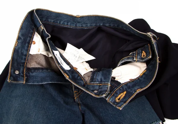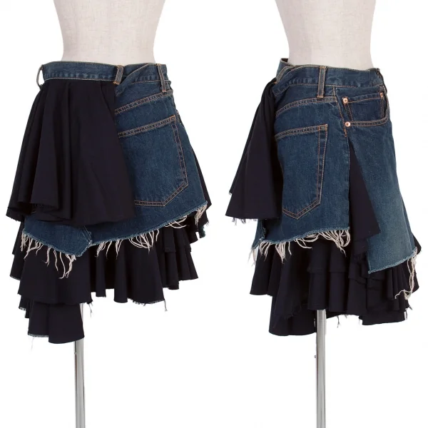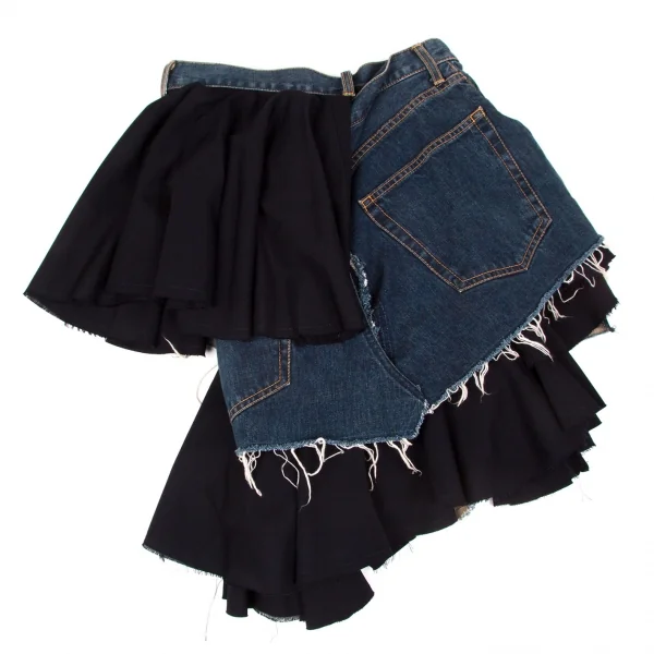 ジュンヤワタナベコムデギャルソンJUNYA WATANABE COMME des GARCONSウールギャバ切替デニムラップデザインスカート インディゴ紺M